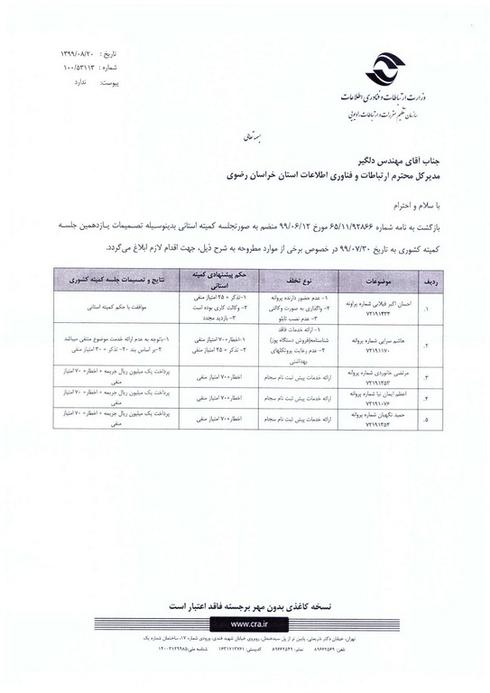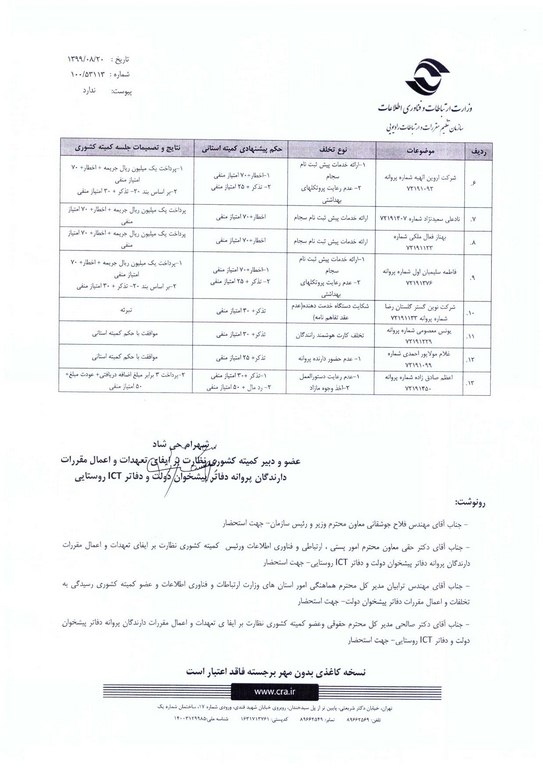تصمیمات صورتجلسه یازدهمین کمیته کشوری استان خراسان رضوی به تاریخ 99/07/30