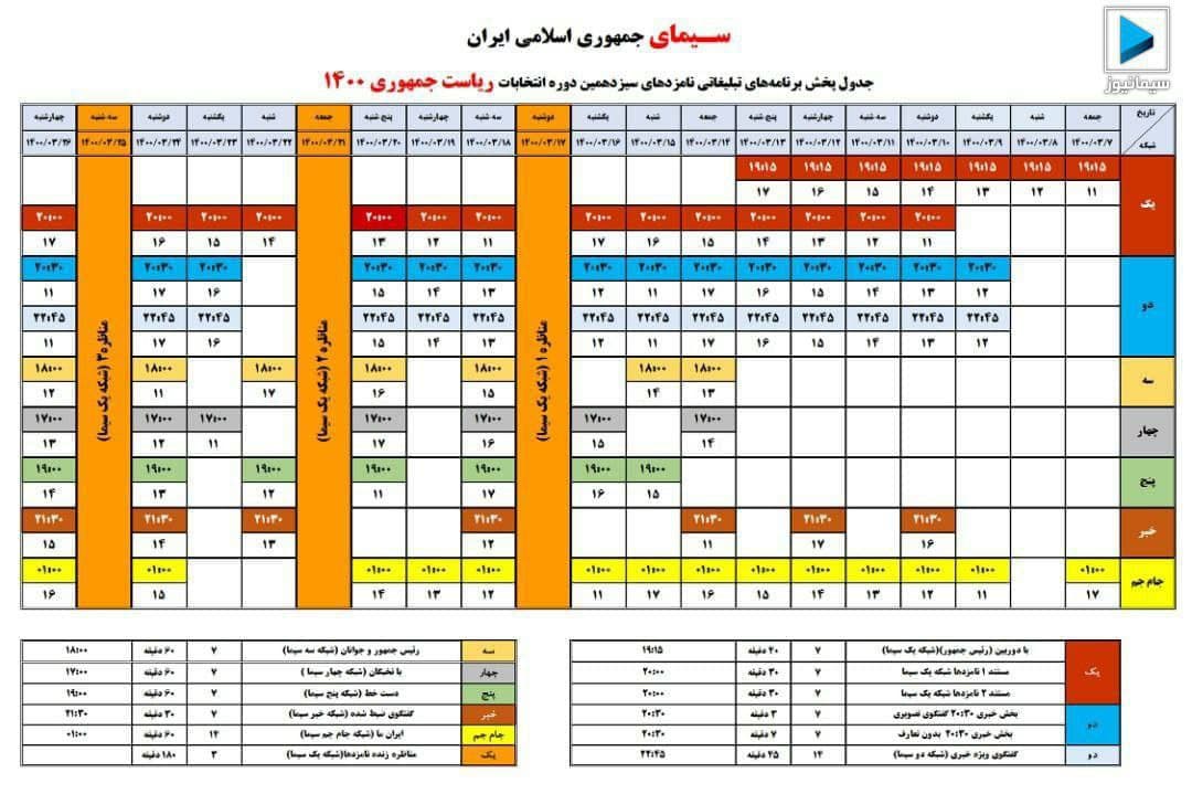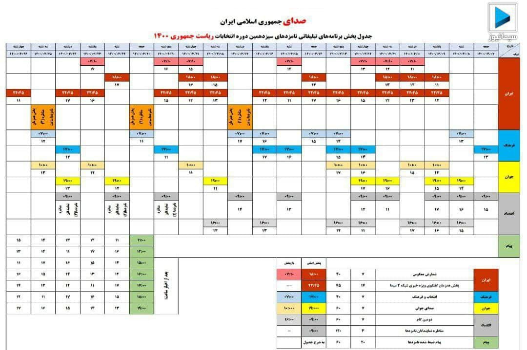 زمان بندی تبلیغاتی هفت نامزد ریاست جمهوری مشخص شد