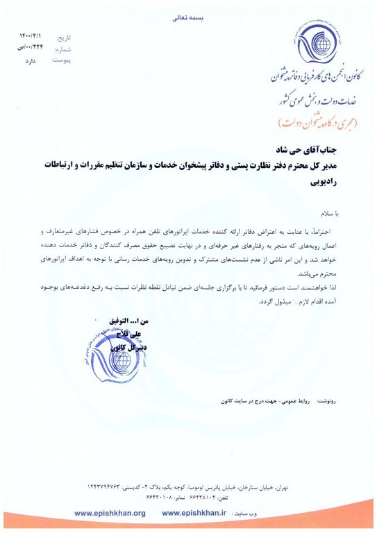 برای دریافت فایل pdf اینجا کلیک کنید روابط عمومی کانون کشوری دفاتر پیشخوان خدمات دولت و بخش عمومی کشور