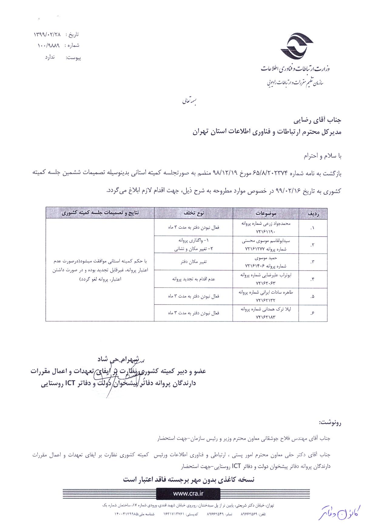 برای دریافت فایل (pdf) صورتجلسه ششمین کمیته کشوری اینجا کلیک کنید (استان تهران)